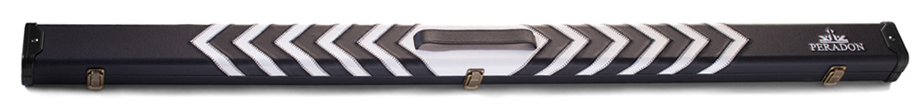 The high quality Peradon cue case features a black and white arrow pattern exterior with black and red interior. This attractive and robust case with leather look covering and attractive embroidery offers superb value for money. The mock sued interior is padded to hold the cue securely in place and features a separate compartment for storing chalk. Great value and a superb look from Peradon, the oldest cue makers in the world.