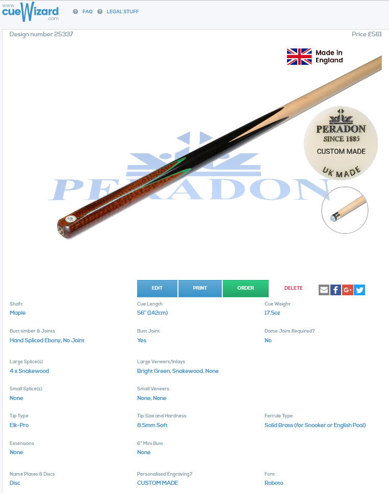 Peradon Cue Wizard Design Number 25337 with ABC Snooker 10% Discount.