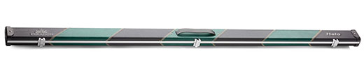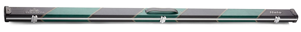 The Peradon Black & Green Stripe 'Halo' Widen Cue Case for One Piece Cues are made of an aluminium construction and offer maximum cue protection as well as an incredibly classy modern exterior design. The outer surface is upholstered with hard wearing leather look material to create a very attractive cue case. The hinge is an integral part of the shape of the case making it extremely robust. The catches are of the highest quality with a highly polished chrome finish. The interior is black flocked foam to hold the cue securely in place.
