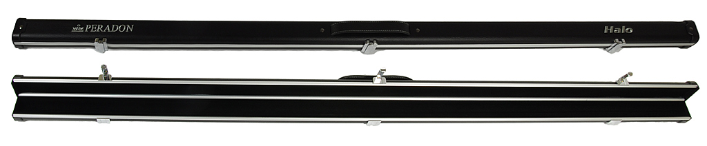 Great Discounts on the Peradon Halo 1-Piece Cue Case (Thin) with Selected Cues. The Peradon Halo Leather Effect 1-Piece Cue Case (Thin) is just superb! Made from aluminium it is light yet very robust with black leather styled sections and a silver embroidered Peradon Halo logo.