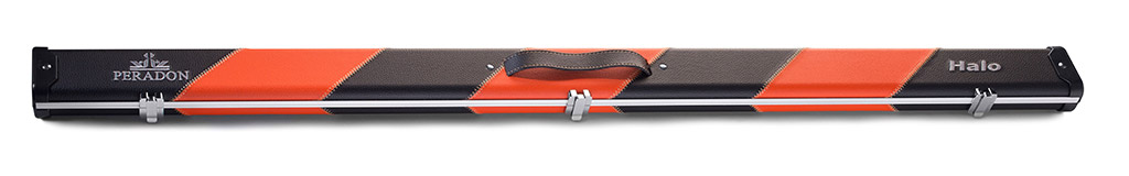 The Peradon Halo Black & Orange Striped Leather Effect 3/4 Cue Case is crafted from an aluminium construction and offer both maximum cue protection and superb looks. The exterior is upholstered with hard wearing leather look material to create a very attractive cue case. The hinge is of course an integral part of the shape of the case making it extremely robust. The closing catches are of the finest quality with a highly polished chrome finish. The interior is black flocked foam to hold the cue securely in place and stop unwanted on movement of the cue inside whilst being carried.