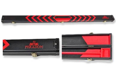 Black and red arrow pattern exterior with black and red interior. This attractive and robust case with leather look covering and attractive embroidery offers superb value for money. The mock sued interior is padded to hold the cue securely in place and features a separate compartment for storing chalk. Great value and a superb look from Peradon, the oldest cue makers in the world.