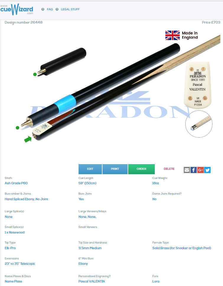 Peradon Cue Wizard Custom Made Cue Design Number 26448