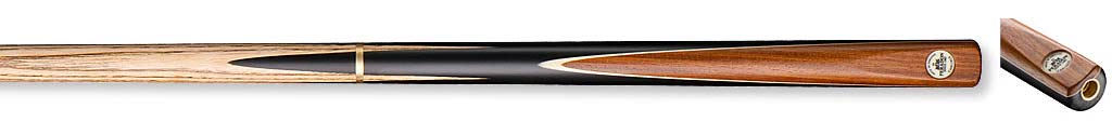 Crafted by Peradon in England from the highest grade, kiln dried, North American hand selected Ash and spliced with Ebonex. Ebonex was developed by Peradon to be the perfect rigidity for play and to be more consistent in density than any other normally used timbers to create more advanced playability in the cue. The ash is hand selected for strength, straightness and rigidity before the Ebonex composition is spliced to the cue by hand and the cue is shaped to produce the distinctive round point pattern of a hand spliced cue.