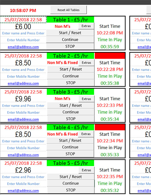 The ABC-XL147 Snooker Pool Timer Control Software runs on any PC or Laptop and Displays Live Table Costs and many other features. Our Snooker Club Management Software is simple to use and requires no major external installation of any hardware as it just runs on any desktop PC or Laptop. This Snooker Pool Billiard Timer can be modified and customised to any requirements you may have.