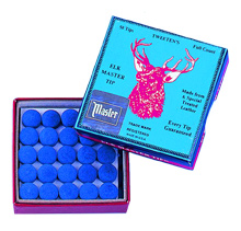 Elkmaster Cue Tips come in a wide range of sizes and are easily shaped giving you the feel and grip you need to impart the best grip and spin on the cue ball for extra control and positioning. The more modern approach to tipping is to use harder tips, the hardest being the likes of the Talisman Pro Tips which are very hard from the second they are put on. These tips are generally softer Blue Diamond Cue Tips meaning they offer better grip fro soft screw and other delicate positional touch or feel shots.