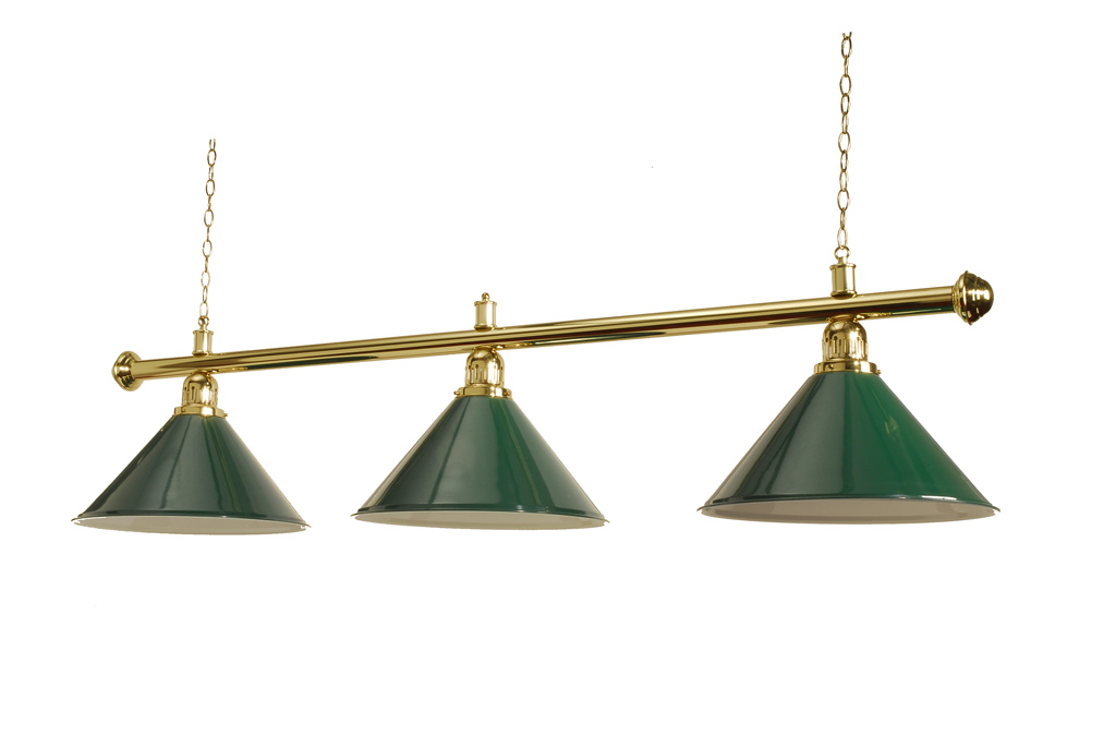 The Peradon Table Lighting with Three Coolie shades has a beautiful look and will grace any home snooker or pool table and is suitable for tables of length 6ft - 8ft tables. Two of these can be used for full sized tables.