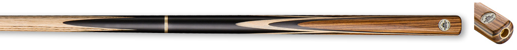 The Peradon Harlow comprises of four large Zebrano splices with Sycamore and Black veneers. These are then hand spliced to the Ebony butt. To eliminate joint problems the two sections of the 'quick action' joint are each precision turned from a single piece of solid brass and precisely fitted 16” from the butt end to give the shaft length of 42”. In order to reduce stress to the timbers the cue is then shaped over a period of time until the final tapered shape is achieved, after which the numerous sanding and finishing processes are then undertaken to achieve a superb silky smooth finish.